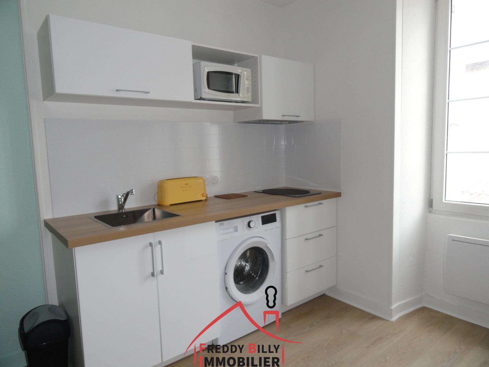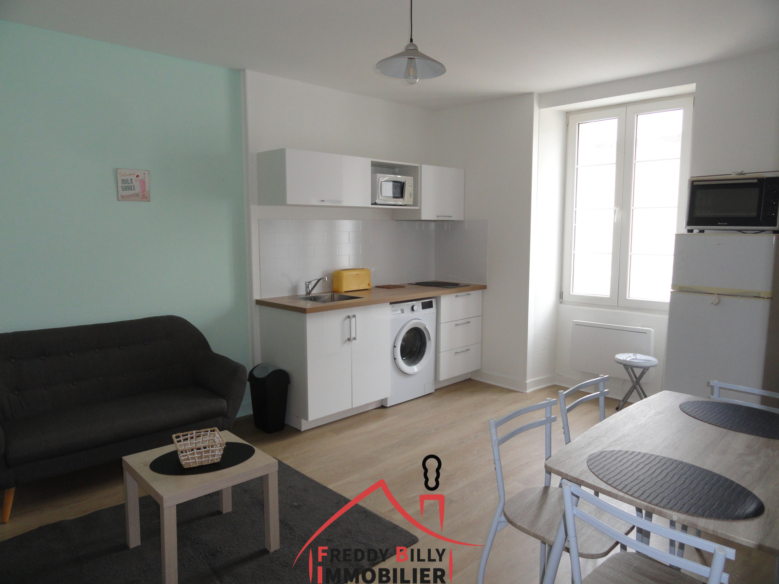 Réf 229 - THOUARS - Situé en centre-ville, Appartement meublé T2 rénové, d'une surface hab de 35.95 m² avec au RDC : entrée ; au 1er étage : pièce de vie avec coin cuisine aménagée équipée (meubles + plaque + hotte + four + four micro-ondes + lave-linge + réfrigérateur / congélateur) ; au 2ème étage : chambre avec placards aménagés, salle d'eau avec WC. A proximité écoles et commerces ! Loyer net : 390.00 € + 10.00 € de charges (OM). Libre de suite. Dépôt de garantie : 780.00 €. Honoraires à la charge du locataire : 280.80 € dont 107.85 € pour l'état des lieux. Contact : Freddy BILLY : 06.15.35.17.87 - Agence FB IMMOBILIER - 4 rue du 4 Septembre 79100 THOUARS.