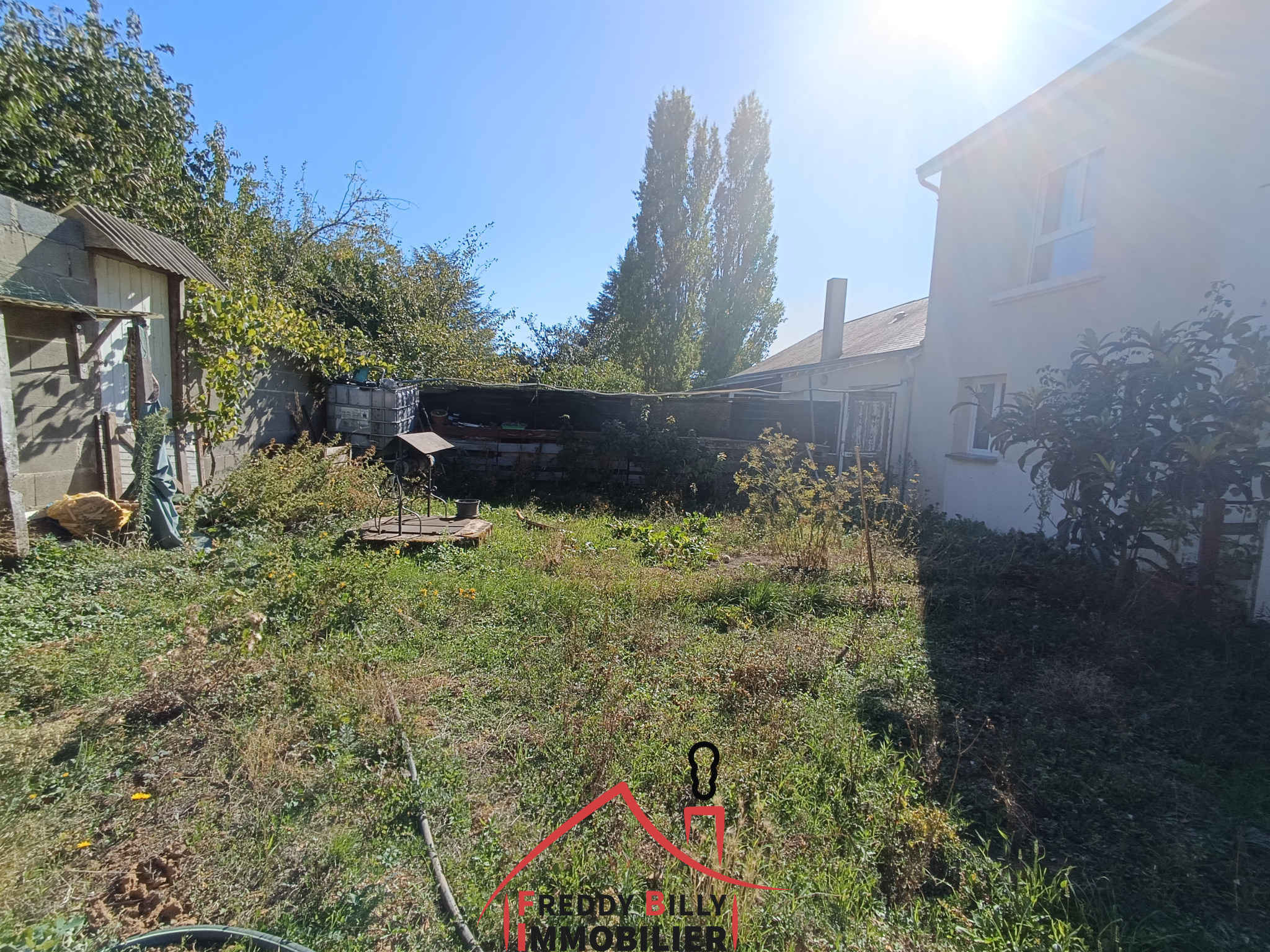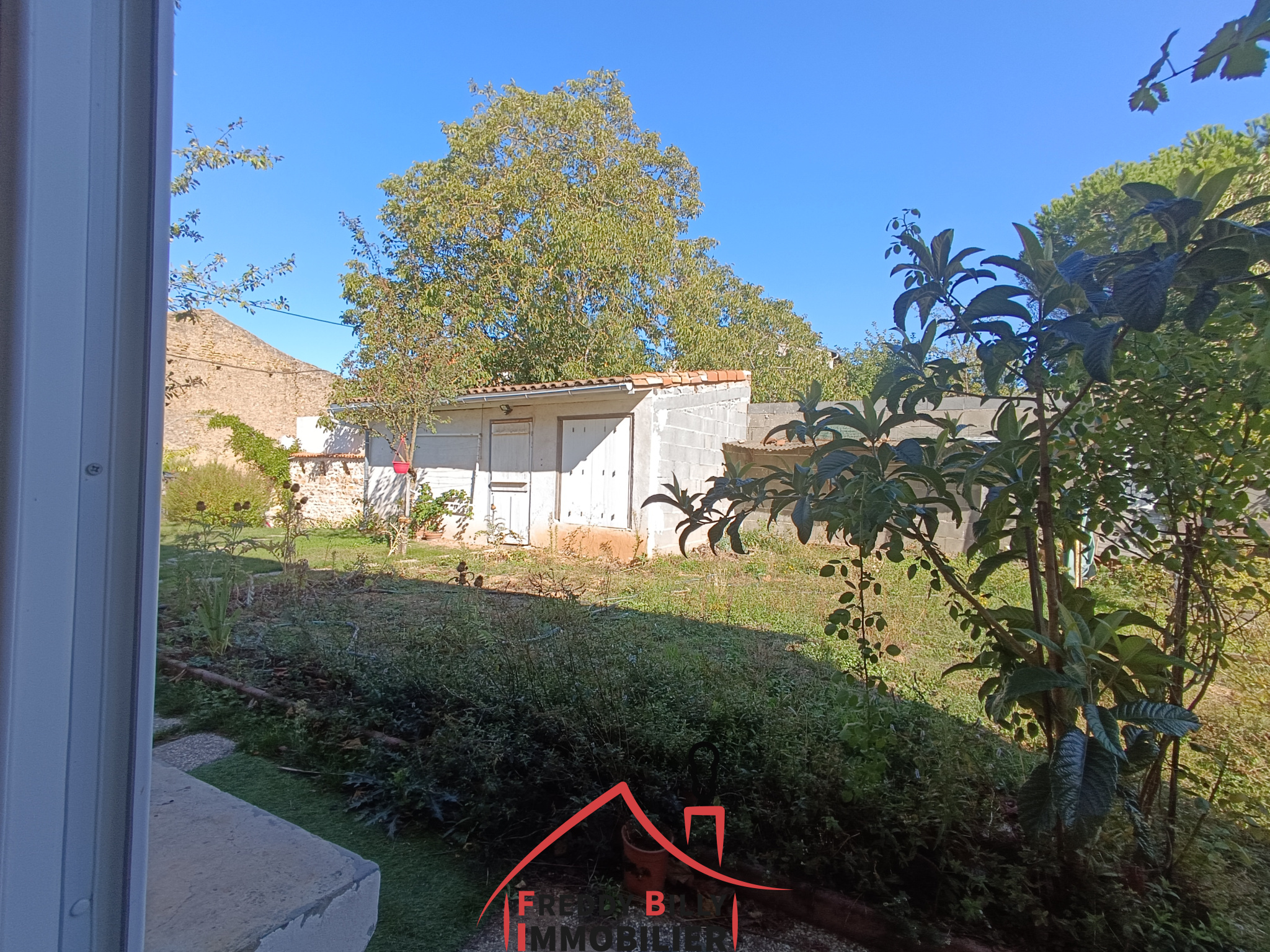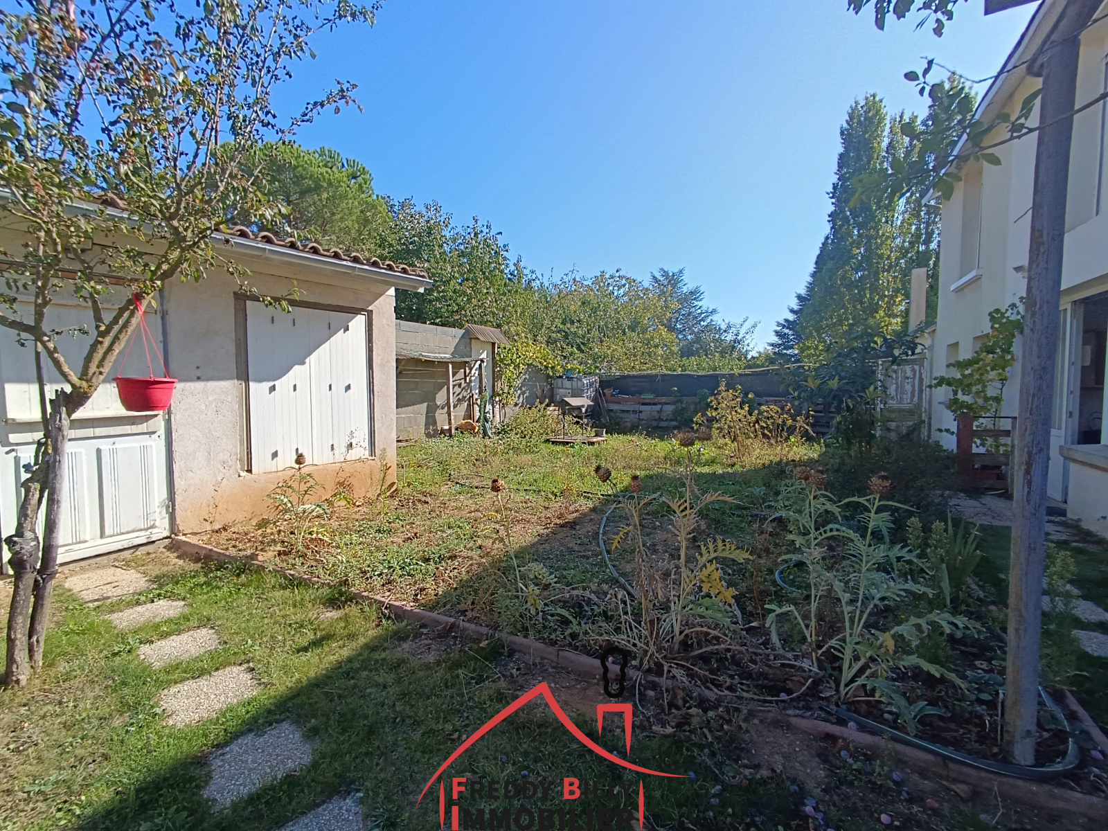 Bel extérieur avec terrasse, garage, coin potager.